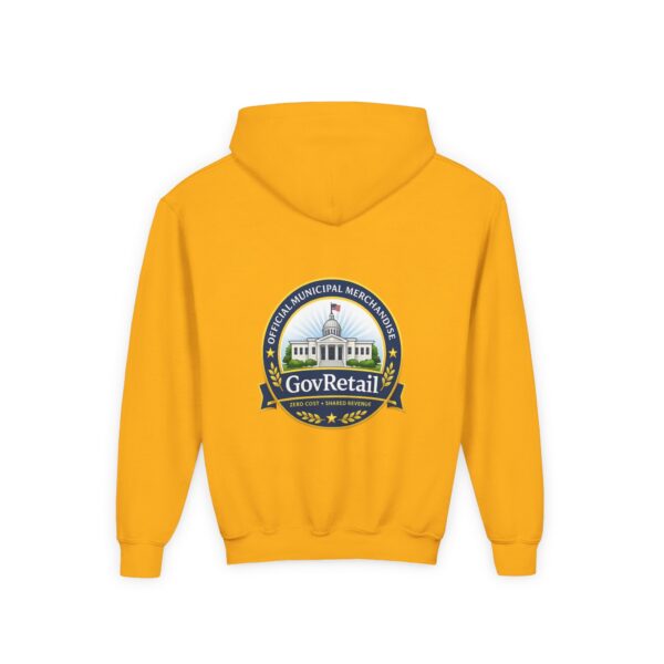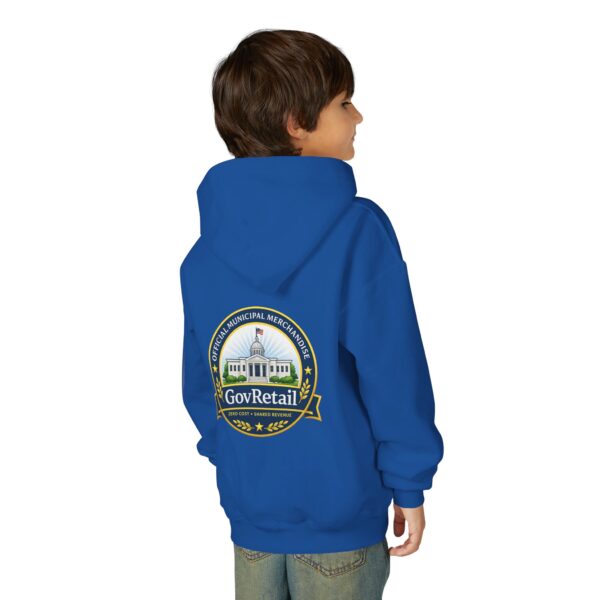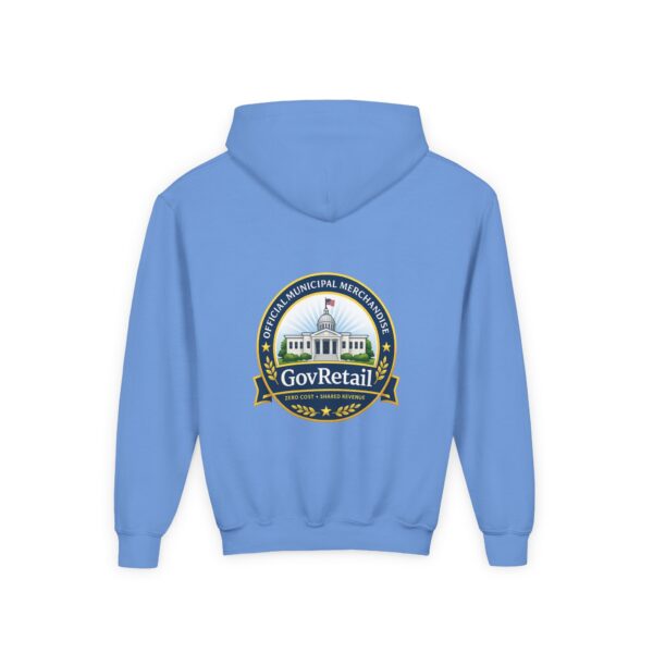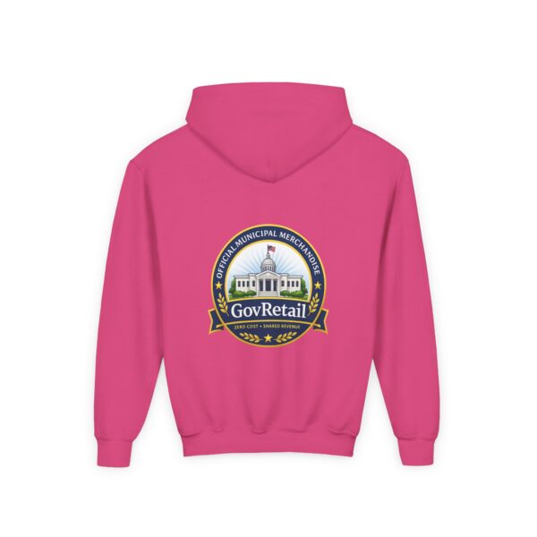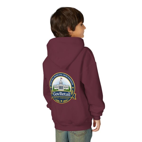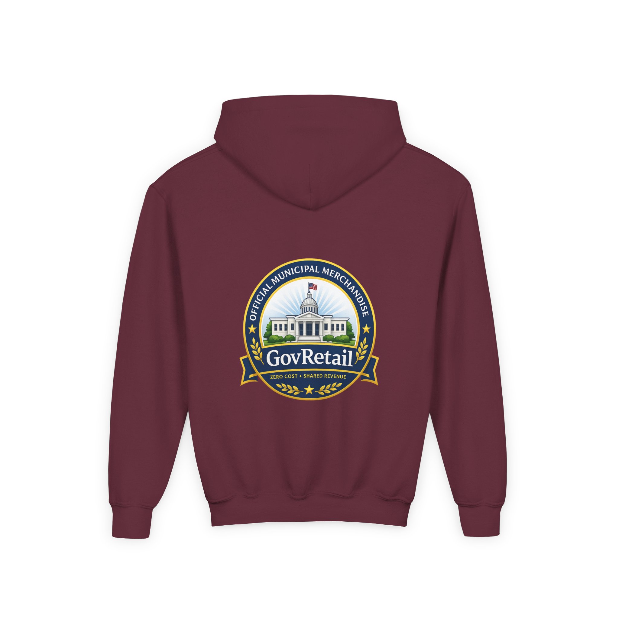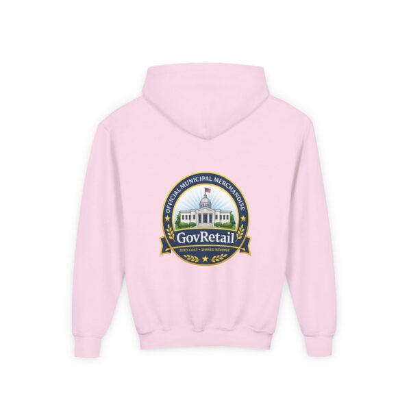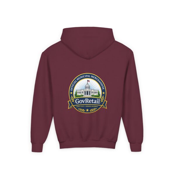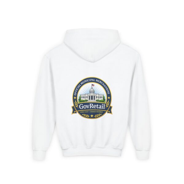Soft, warm, and quietly bold — this youth hoodie carries civic pride into everyday life. The midweight fabric feels sturdy yet cozy, with a roomy kangaroo pocket for cold hands and a comfortable twill neck tape that keeps the hood sitting right. Front lettering reads with friendly, rounded type while the back features a detailed municipal-style seal that nods to local government and community service. It sits true to size and holds up wash after wash thanks to the durable cotton/poly blend and quality printing methods, giving young wearers a comfy layer that also speaks to values they’re learning to own.