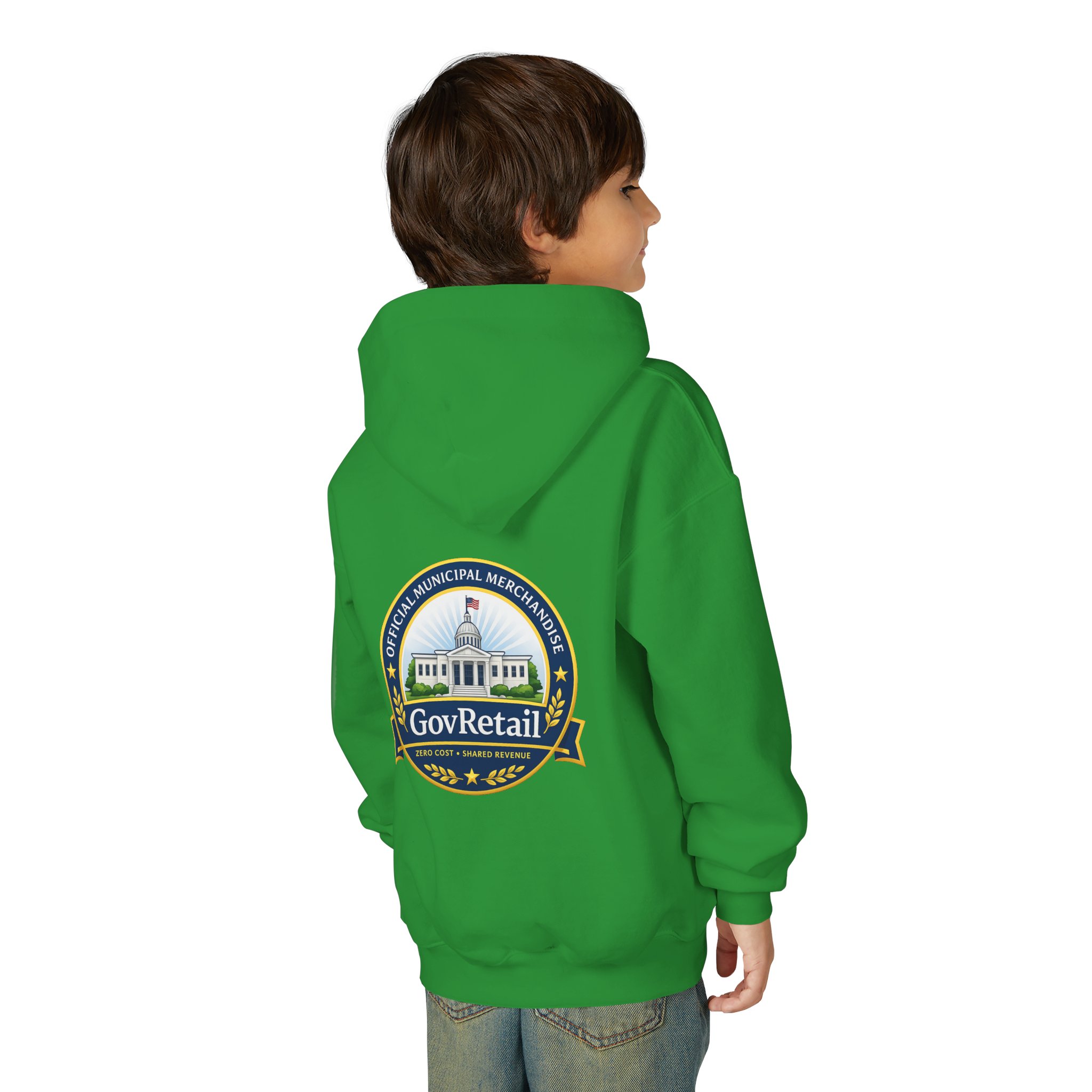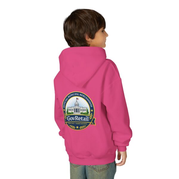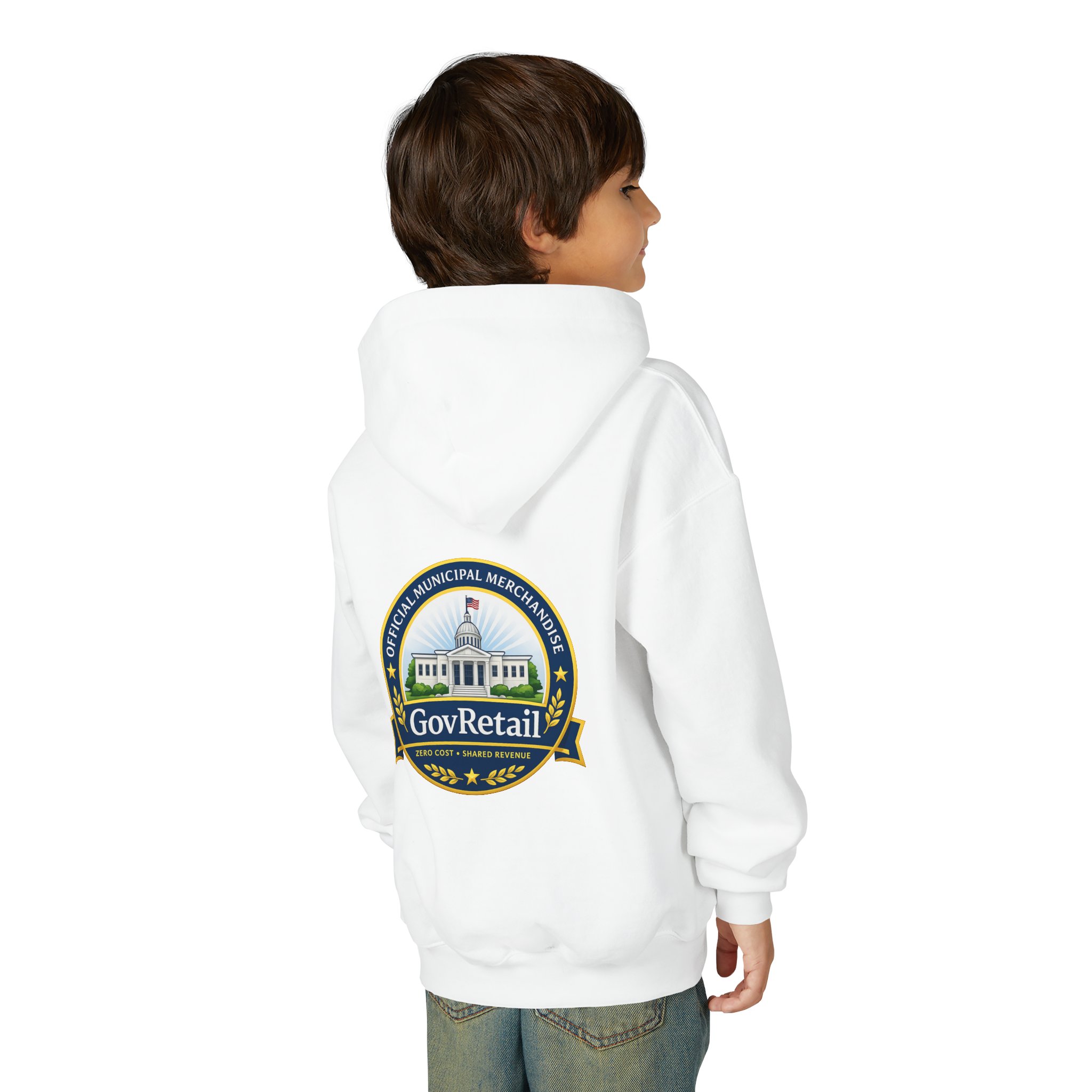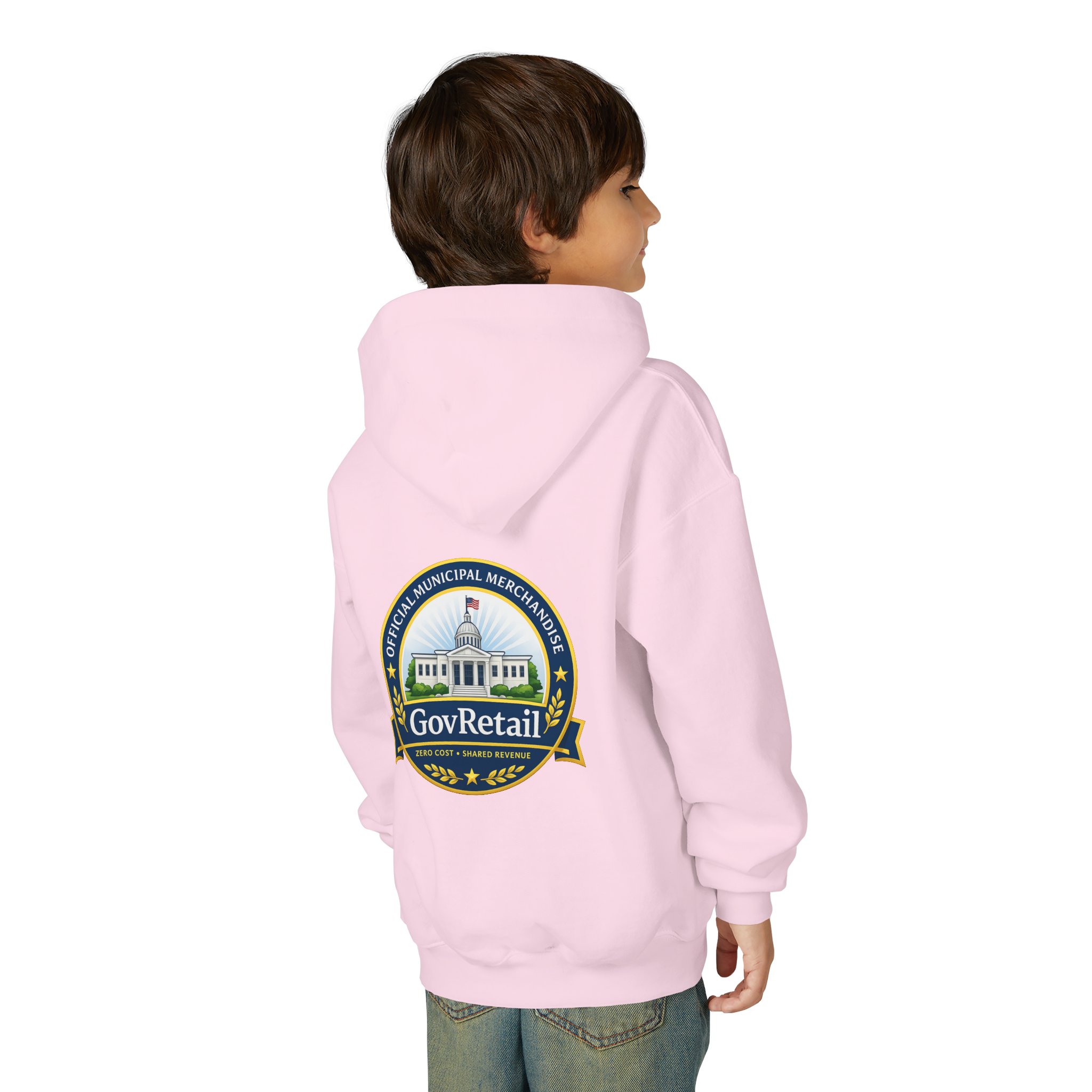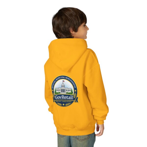 Soft, warm, and quietly bold — this youth hoodie carries civic pride into everyday life. The midweight fabric feels sturdy yet cozy, with a roomy kangaroo pocket for cold hands and a comfortable twill neck tape that keeps the hood sitting right. Front lettering reads with friendly, rounded type while the back features a detailed municipal-style seal that nods to local government and community service. It sits true to size and holds up wash after wash thanks to the durable cotton/poly blend and quality printing methods, giving young wearers a comfy layer that also speaks to values they’re learning to own.